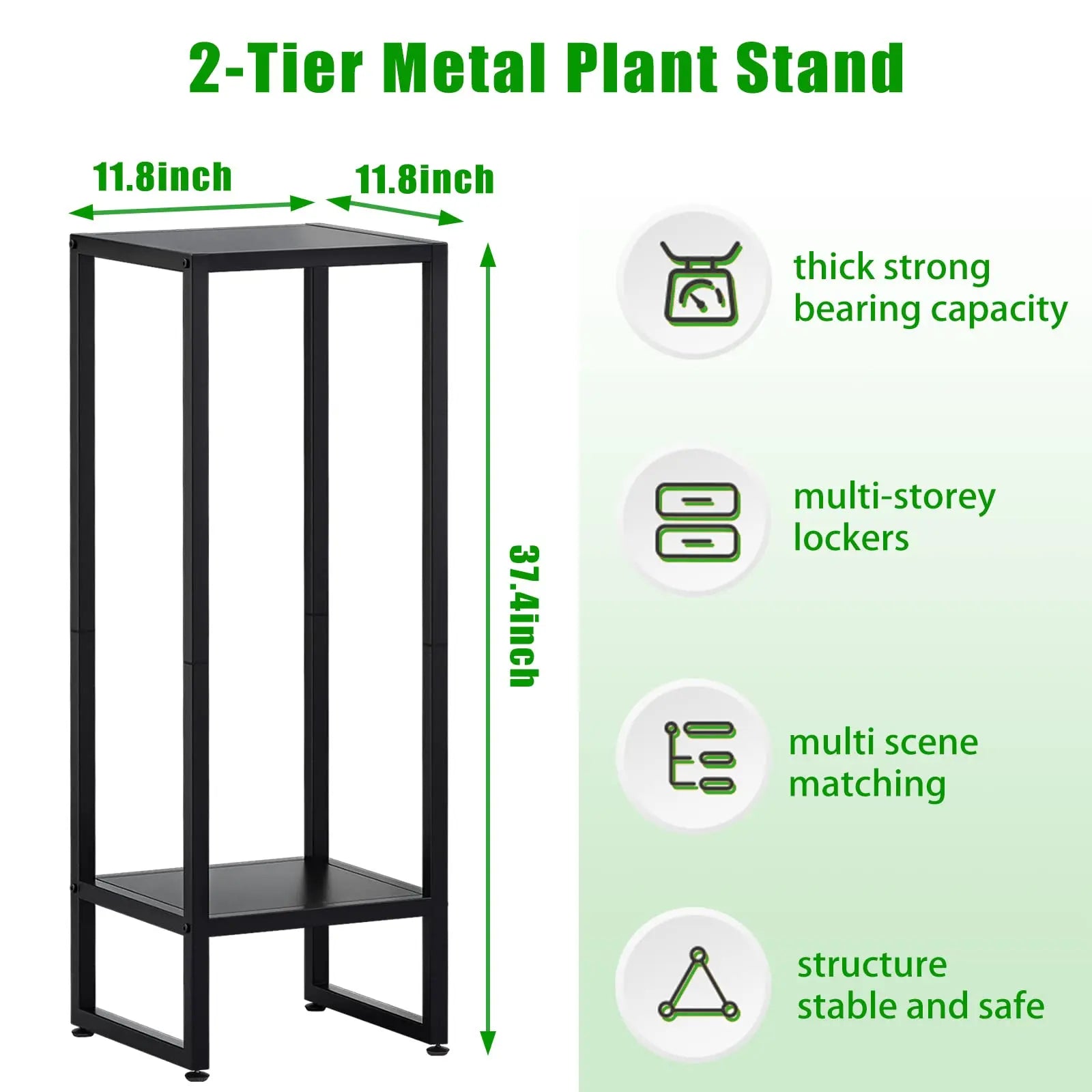 - Simple Design: This Two Tier plant stand can blend in with most of your home decor and furniture, provide enough space to display various plants, flowers, bring a natural and peace to your home. Dimensions: 11.5L x 11.5W x 32H inches, suitable for medium size pots, large and tall plants. The nonslip foots protect the floor for damage while reducing noises from moving.
