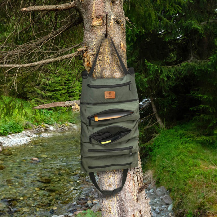 Carry the bag around easily wherever you go with the two large handles. It also allows you to hang the tool bag on a tree so you can get accessed to them quickly.