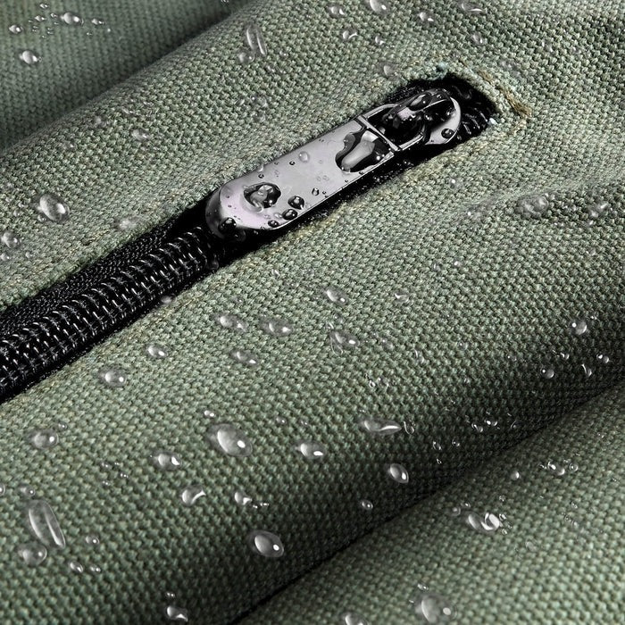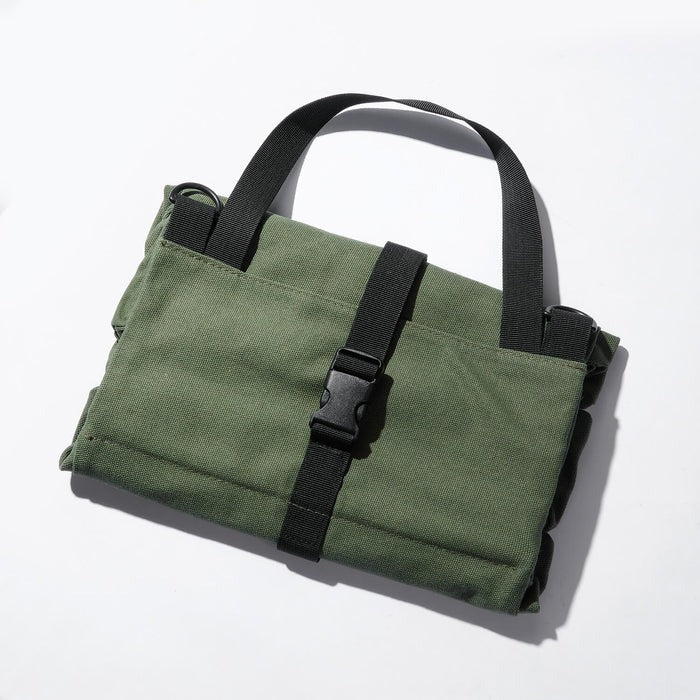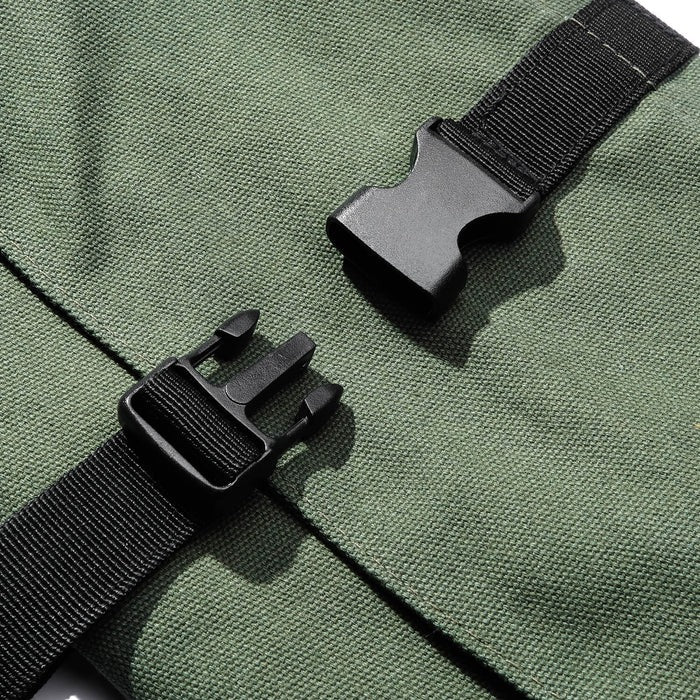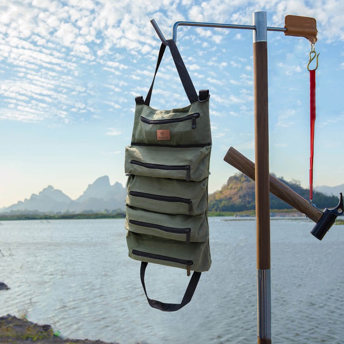 The tool bag is made from water-repellent waxed nylon canvas nylon for durability. It can withstand splashes or rain and is easy to wipe clean.