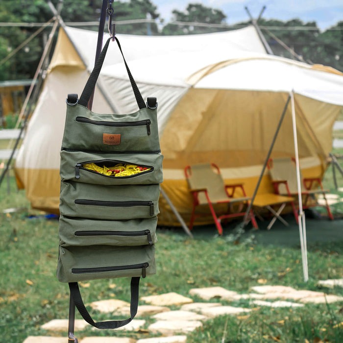The 5-compartment zipper bag will let you store all your small camping necessities in one place.