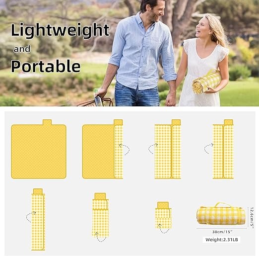 - 【Easy to Fold & Lightweight】 XL picnic blanket can shrink down to a very portable size of 15''x 5''. With the help of the velcro, it will not loose easily and take too much space. The weight of the mat is only 2.3lbs, you can fold it with simple steps, carry or store it anywhere you want.