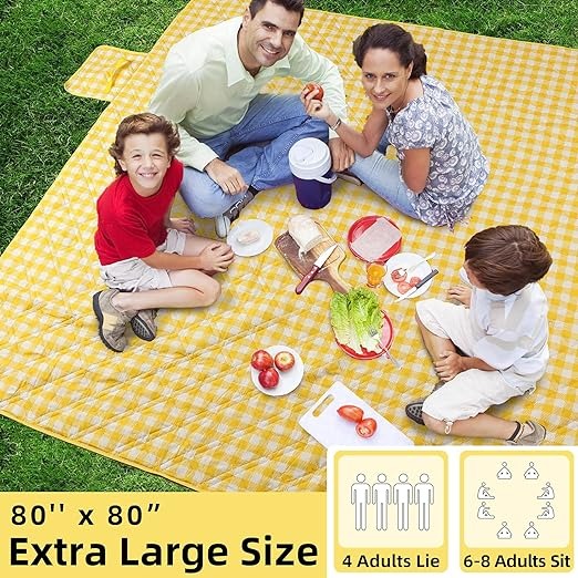 - 【80*80 Oversized for 4-6 Adults】ZAZE Picnic blankets unfolded size is 80''x 80'', it’s large enough to fit for 6-8 adults for siting or 4 adults of lying, giving your children and pets a large area to play.
